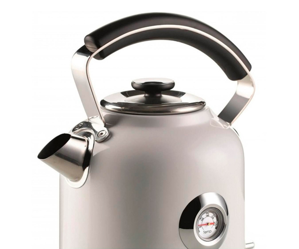 Аккуратный и изысканный электрочайник для любителей стилистики ретро. Модель Ariete 2854 отлично впишется в интерьер кухни и, возможно, станет ее ключевым элементом. Белый цвет изделия хорошо сочетается с общим дизайном стального корпуса. Внимание привлекает наличие круглого термометра под стеклом на боку устройства. Заваривать чай и другие напитки с таким чайником очень удобно. Дисковый нагревательный элемент обеспечивает надежность и долговечность прибора.